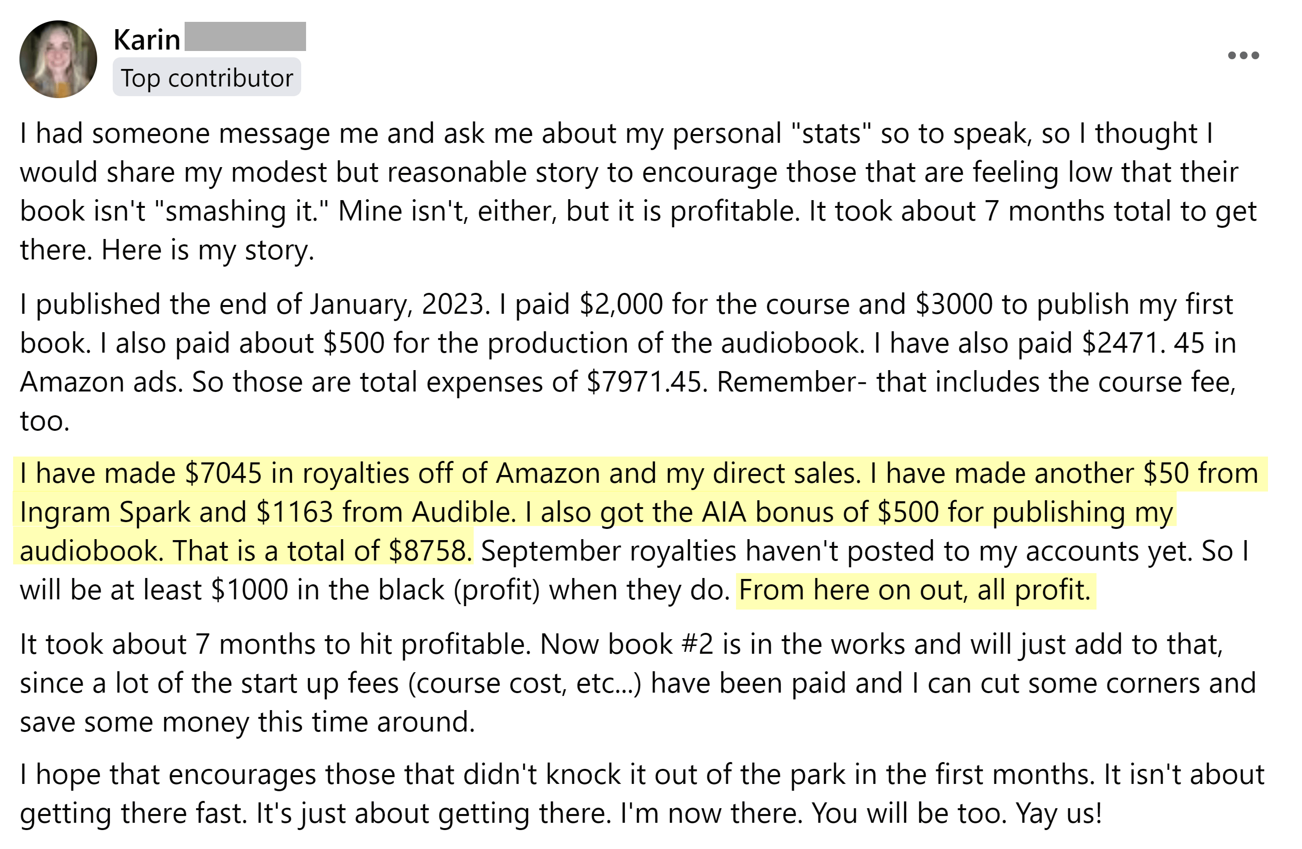 Karin outlines how she built her Amazon passive income business. In less than a year, she published her first book and increased her recurring income to cover her investment and make profits fully. Going from zero to profits in seven months is something to be proud of.