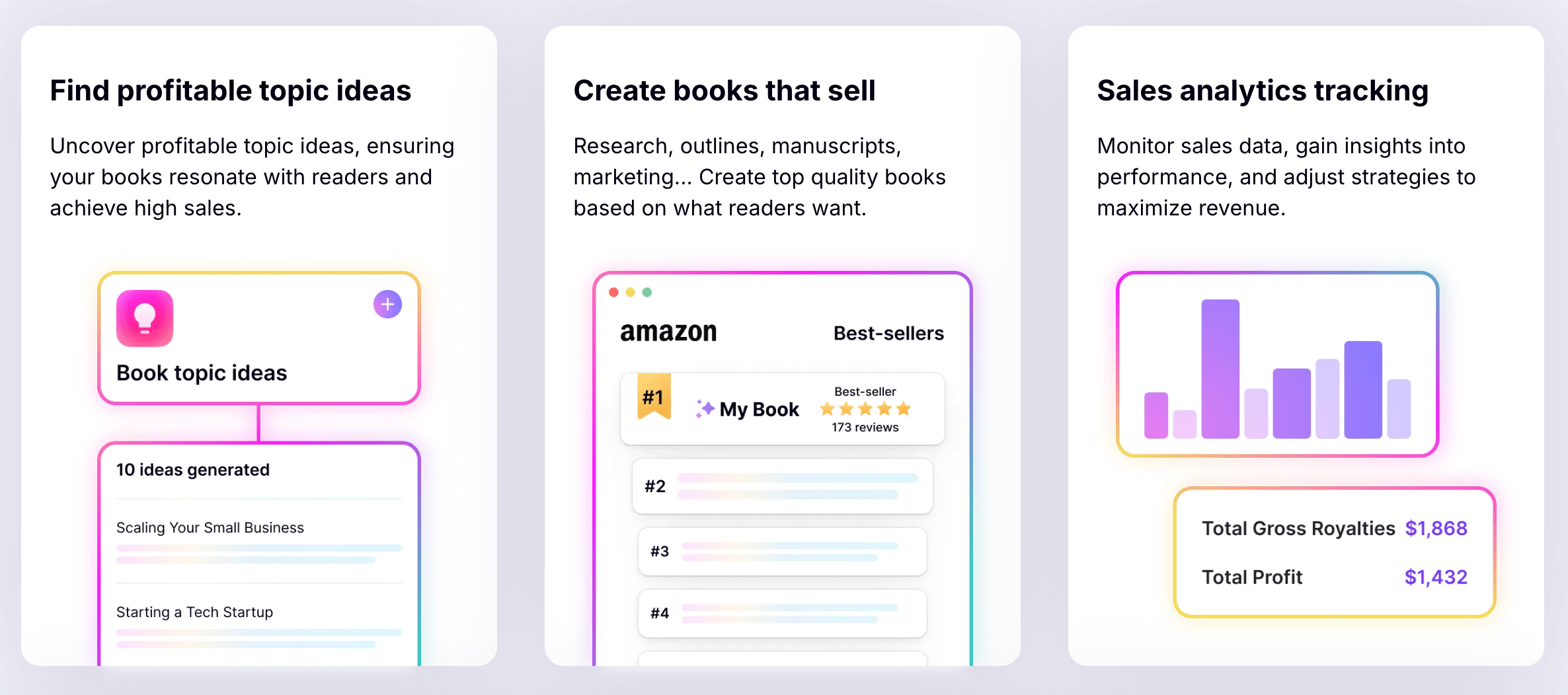 It combines powerful automation with insightful data analysis to streamline your publishing needs. Everything is tailored for self-publishers seeking efficiency and success, from crafting compelling content to optimizing your marketing strategy.