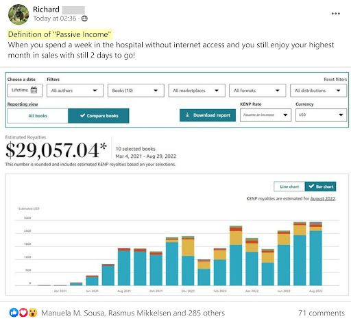 Richard highlights the income potential, even when circumstances aren't ideal. Imagine your books working for you and earning you money while your focus is on yourself or your loved ones!