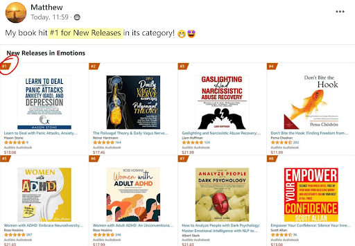 Matthew’s book reached the number one spot for New Releases in its category. Putting in the time and effort to self-publish a book is deeply satisfying, and seeing it rank well is even more satisfying.