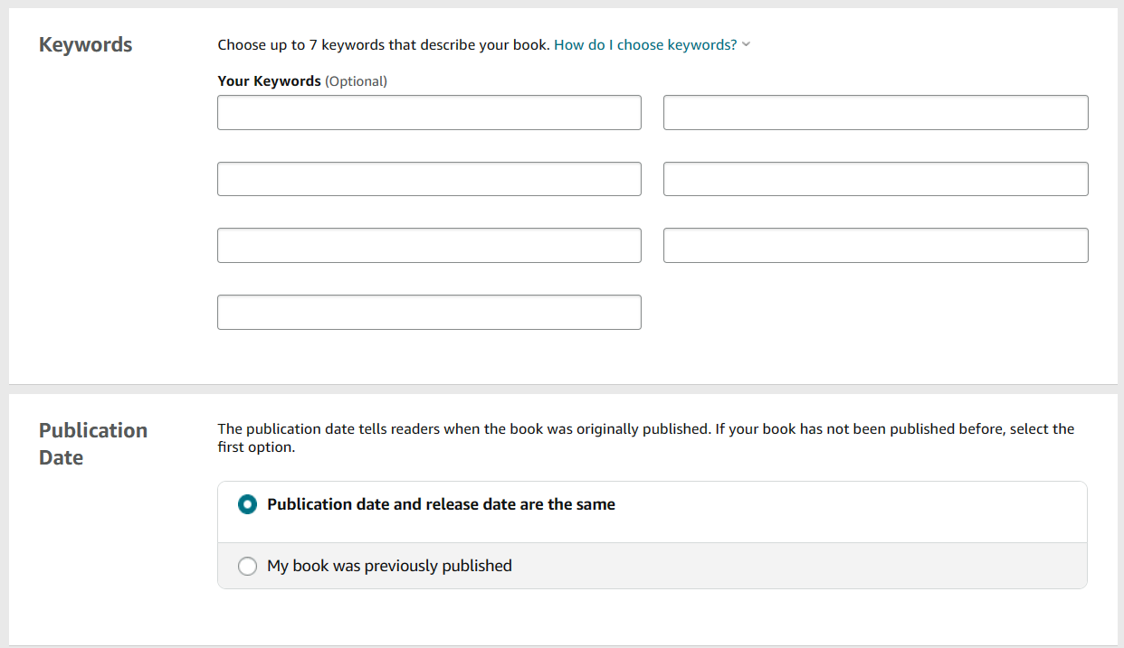 Then, choose your publication date. In most cases, it will be the same as the release date unless you have a particular book launch plan that specifies otherwise.