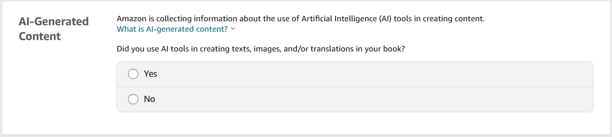 Note: Amazon is NOT against AI! They just want to know whether your content was AI-assisted or AI-generated and what level of edits you made for research purposes.
