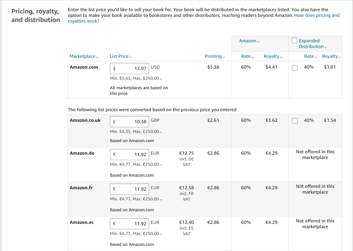 Amazon will display your take-home royalty rate depending on which list price you select. We'll talk about this more later on in the blog, but you can play around with it to find a price that feels comfortable.