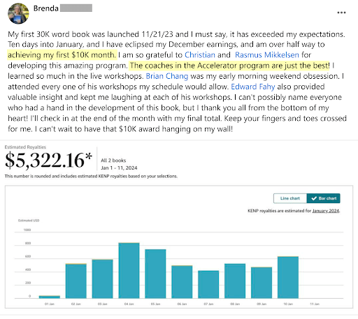 Amazon’s massive customer base is not the only thing that makes It the perfect place to sell self-published books. The platform's sophisticated search engine and algorithm make it easier for interested readers to find your book. Next, we will share some of our success stories from students who sold on Amazon.